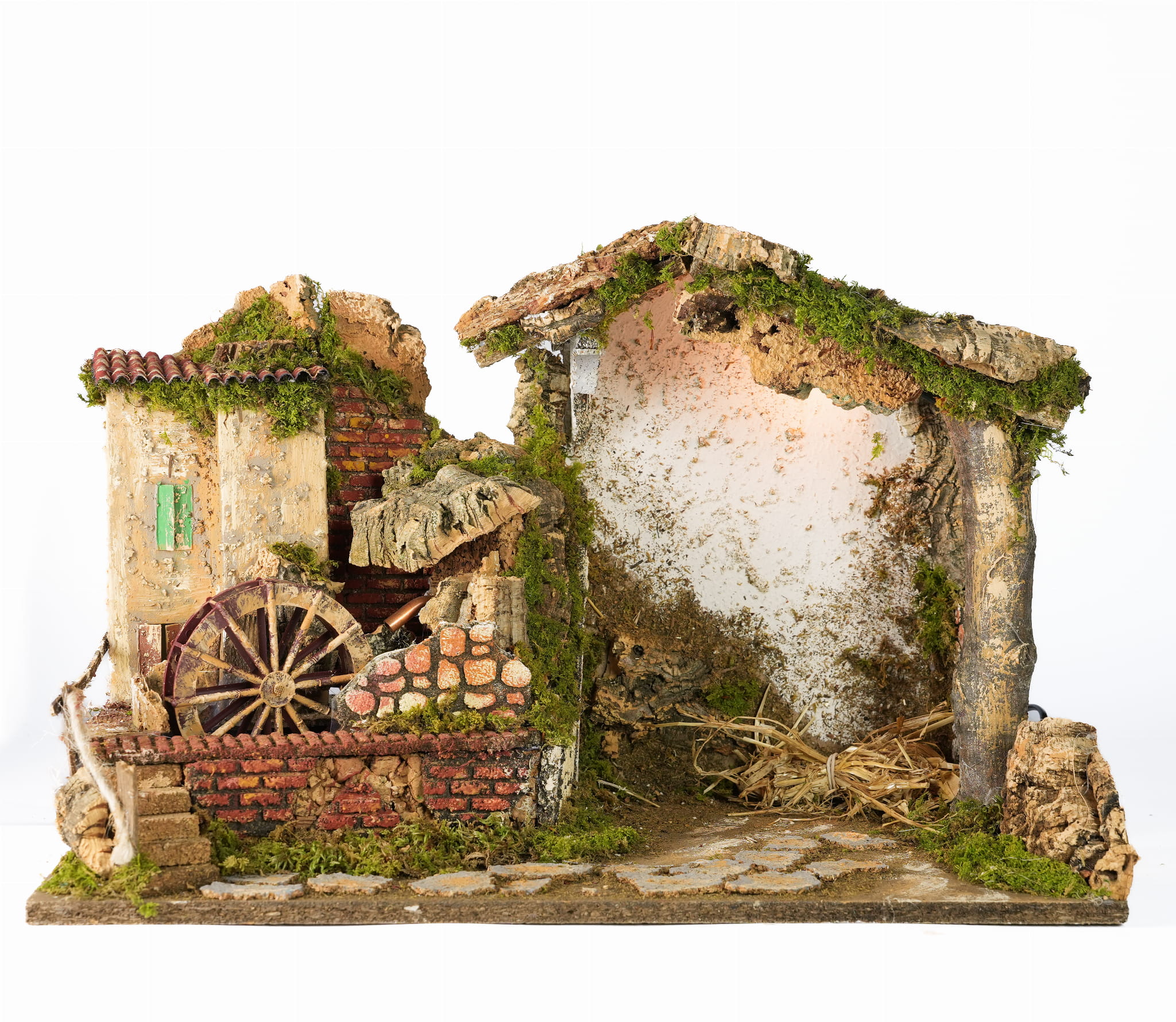 (11857) Szopka/ Stajenka z kołem wodnym i oświetleniem. 50 x 26 x 33cm, do figur 15-20cm