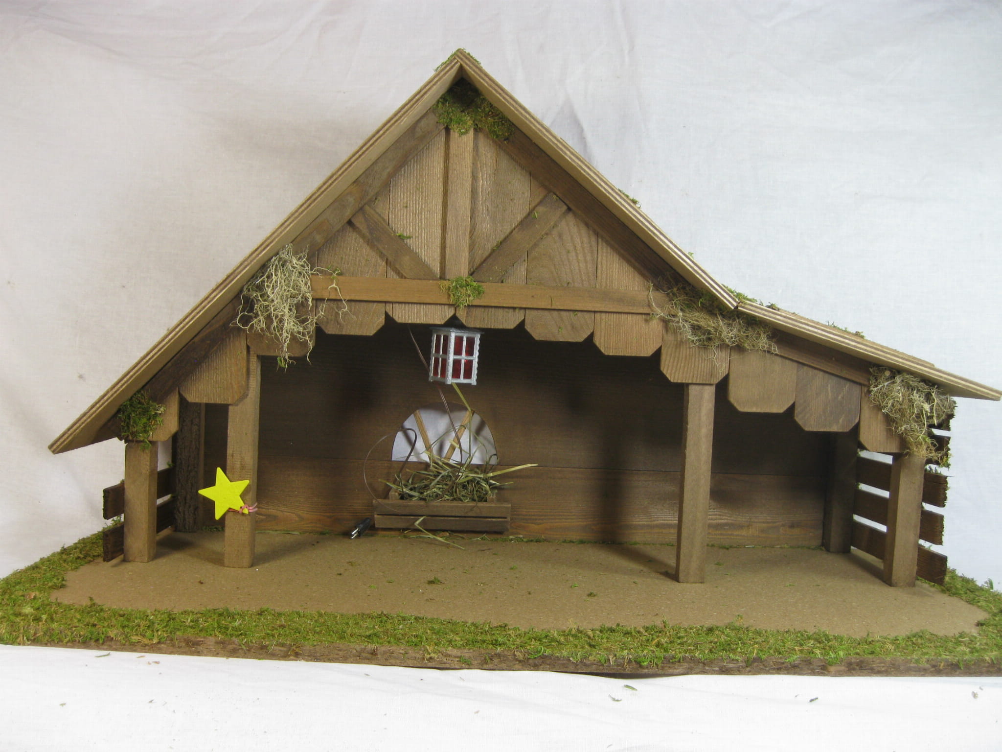 (1313/12L) Szopka Bożonarodzeniowa 64x30x35cm z latarenką, do figur o wysokości 12,0cm