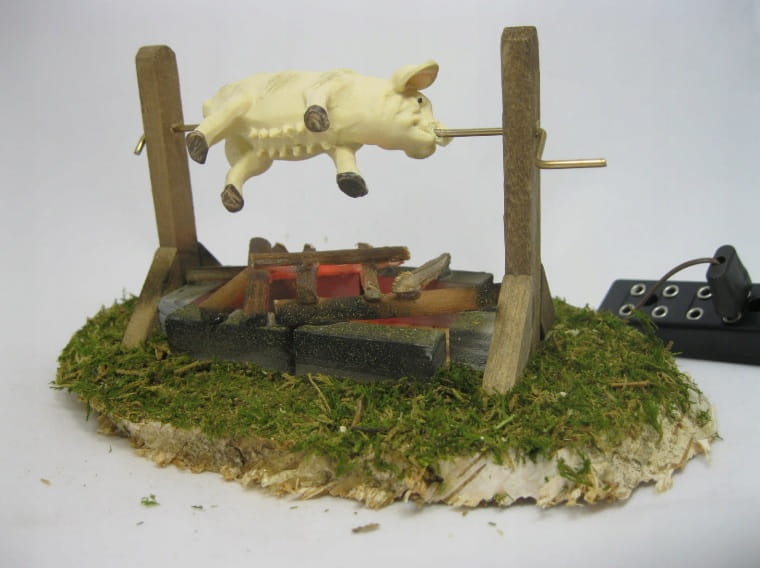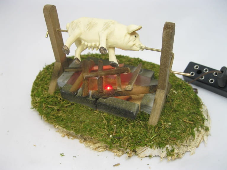 (177/2) Ognisko z świnią, oświetlony, do figur o wys. 9-12cm