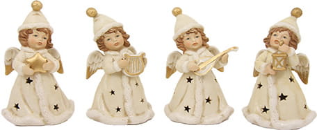 4 Anioły świąteczne z instrumentami i światłem LED