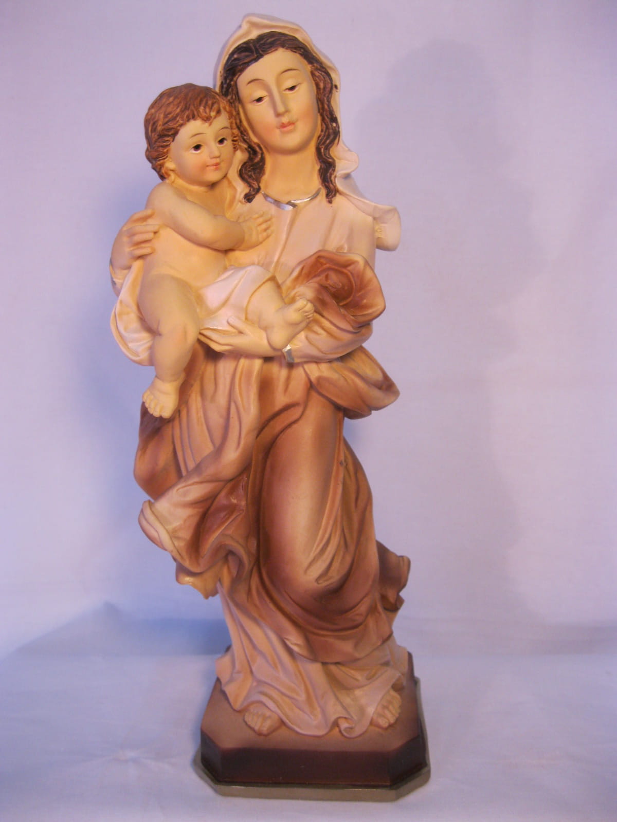 (M011-46) Figurka Matki Boskiej z Dzieciątkiem Jezus, bejcowana - 46,0cm wysoka