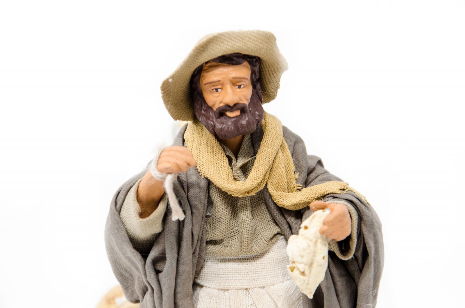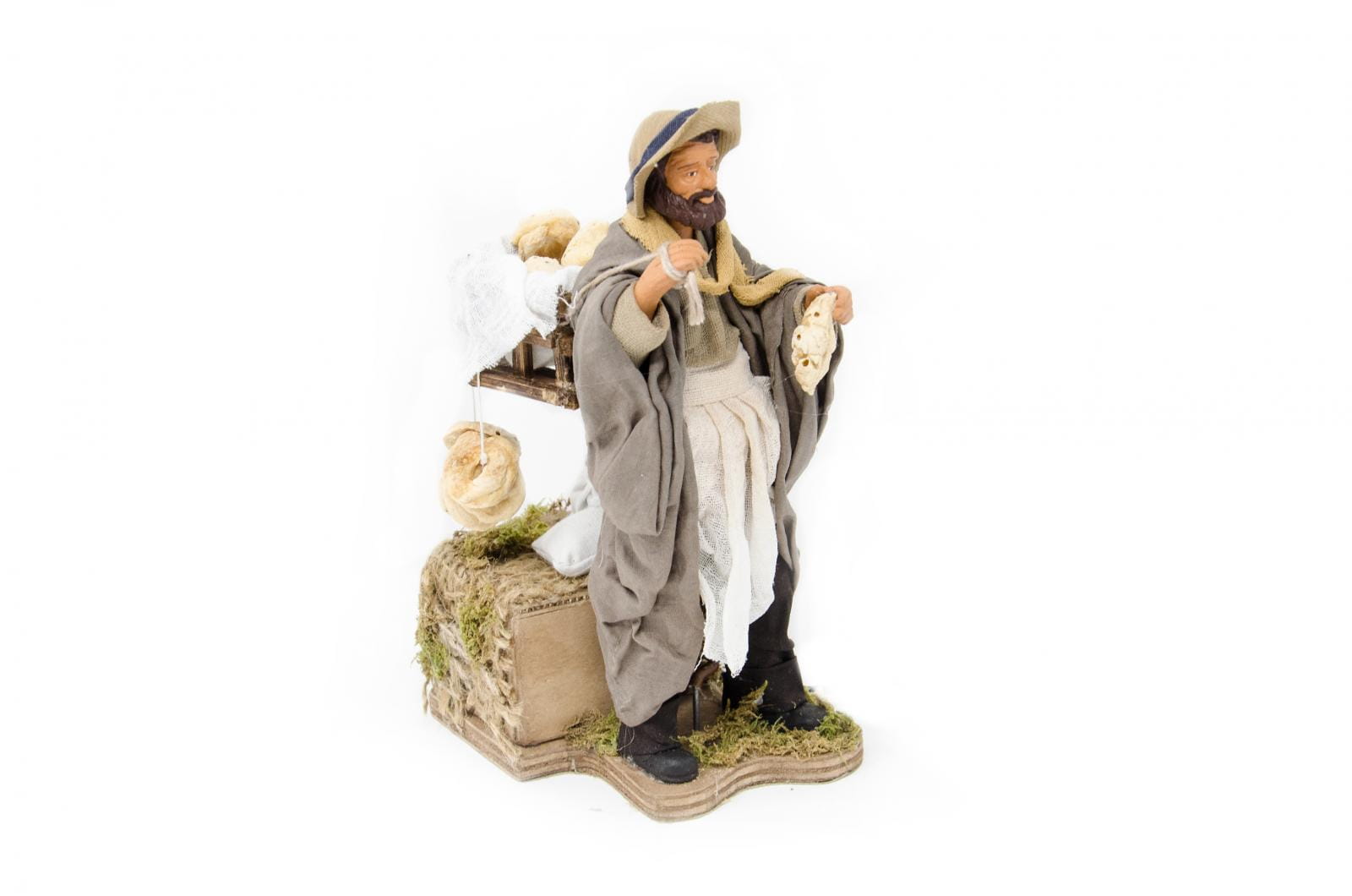 (RMPG) RUCHOMA FIGURA DO SZOPKI - Sprzedawca z pieczywem, do figur o wysokości 15cm