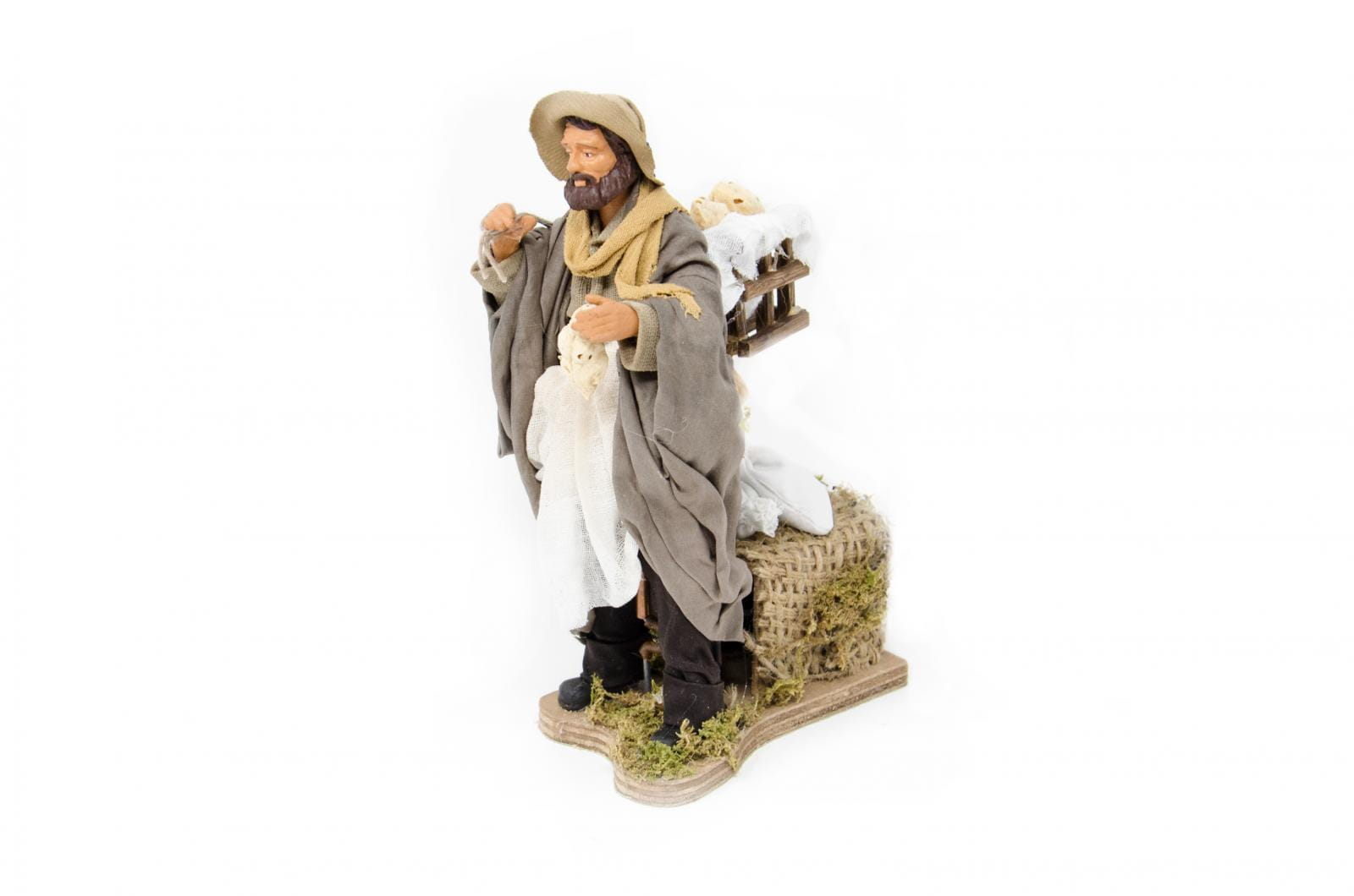 • wykonana z drewna i materiału naturalnego, figura wykonana z terakoty i ręcznie malowana