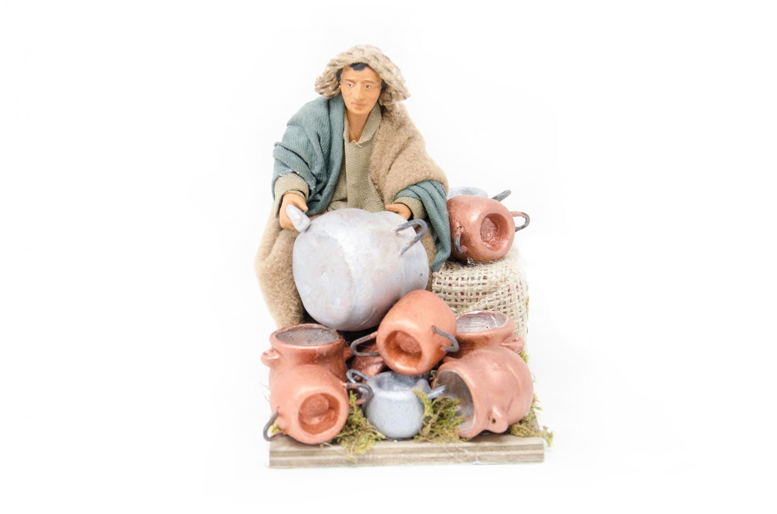 • wykonana z drewna i materiału naturalnego, figura wykonana z terakoty i ręcznie malowana
