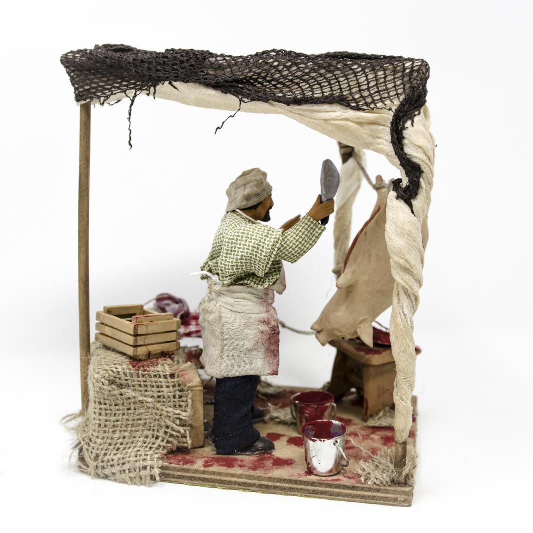 (RMSM) RUCHOMA FIGURA DO SZOPKI- Rzeźnik zarzynający, do figur o wysokości 15cm