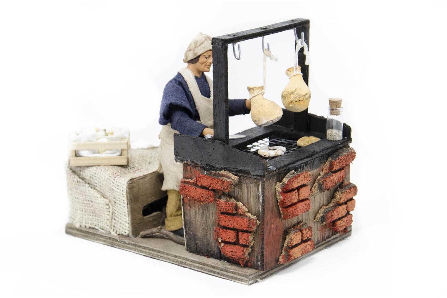 (TMCT) RUCHOMA FIGURA DO SZOPKI- Mężczyzna krojący caciotte (włoski ser), do figur o wysokości 12cm
