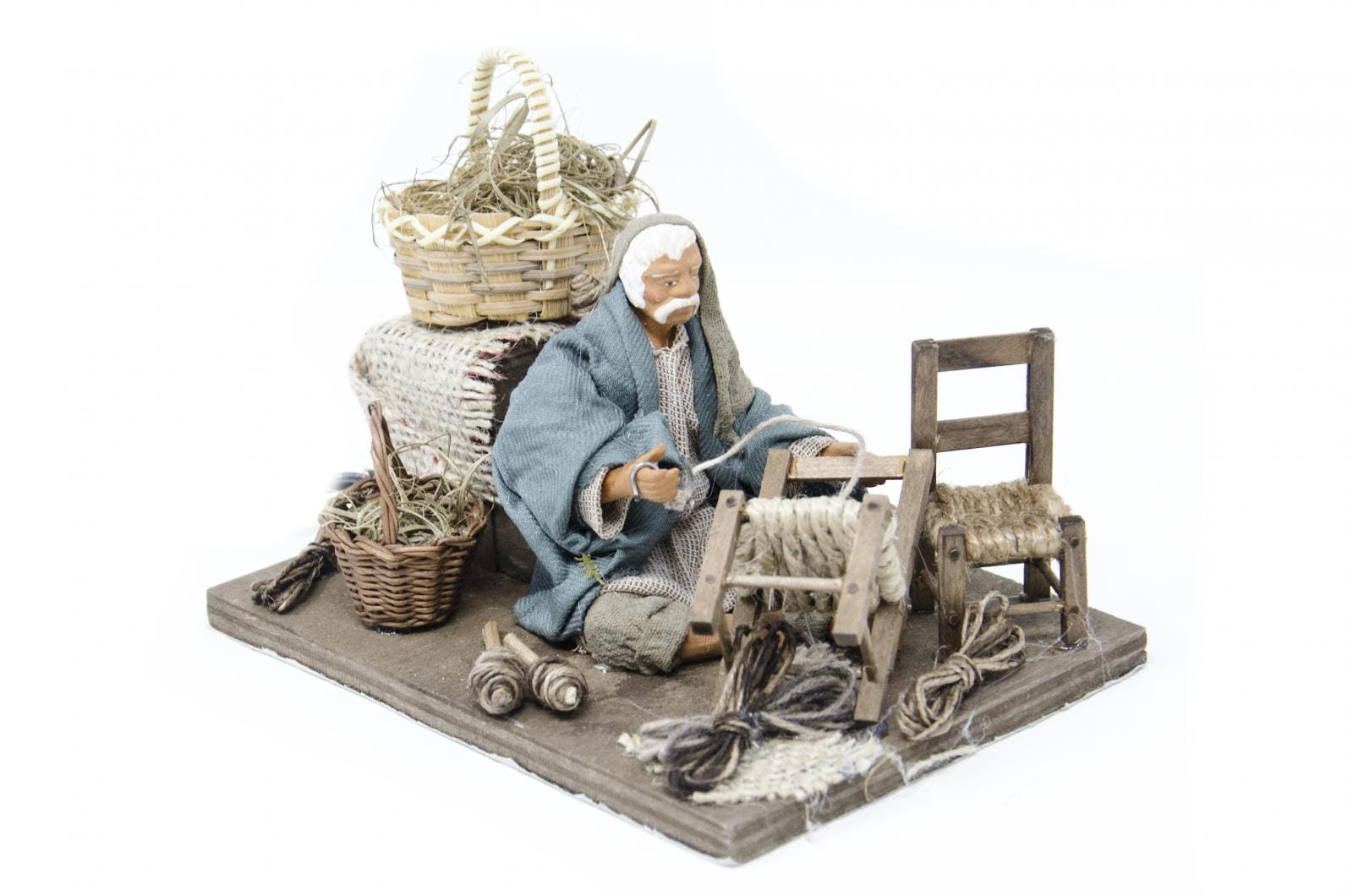 • wykonana z drewna i materiału naturalnego, figura wykonana z terakoty i ręcznie malowana