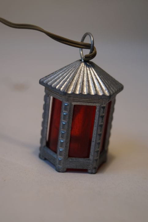 (X007) Latarnia metalowa, czerwona, sześciokątna- 5cm