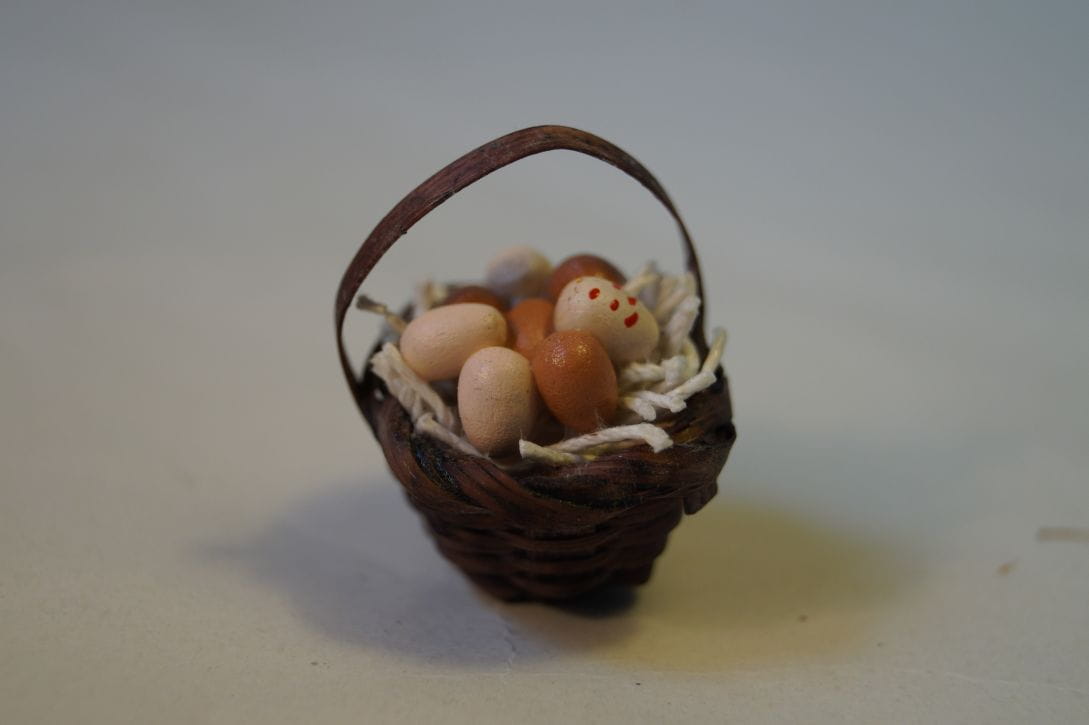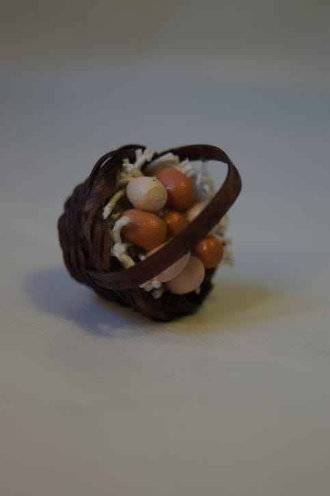(Z415-K) Mały koszyk wiklinowy z jajkami, średnica 2,5cm